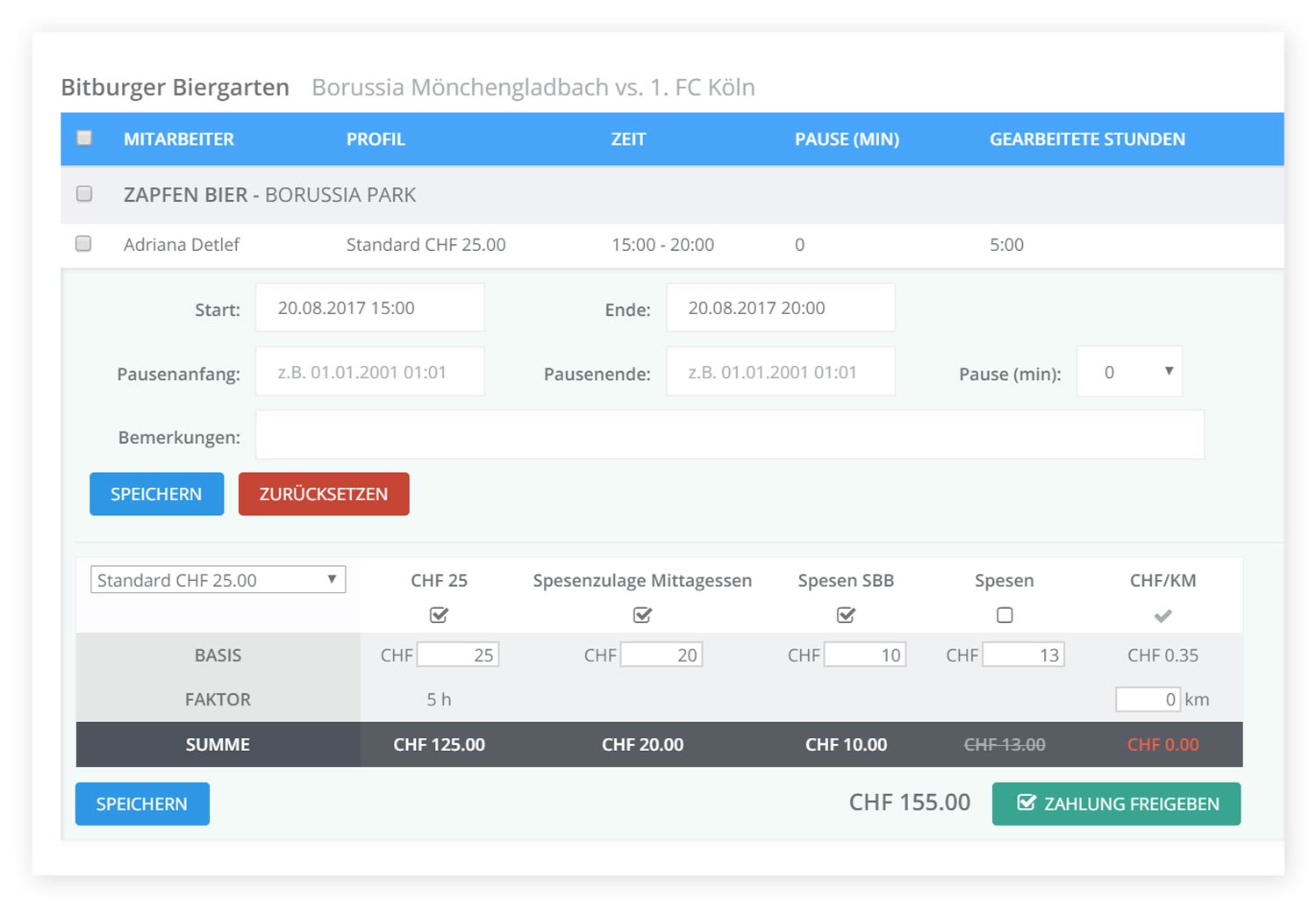 Nach dem Einsatz gilt es die Arbeitszeiten der Mitarbeiter zu erfassen und die Mitarbeiter für ihre geleistete Arbeit zu beurteilen. Sind alle Daten erfasst, hilft Ihnen Staffcloud auch jegliche Projektstatistiken wie Lohnkosten oder die gesamten Arbeitsstunden zu ermitteln und darzustellen.