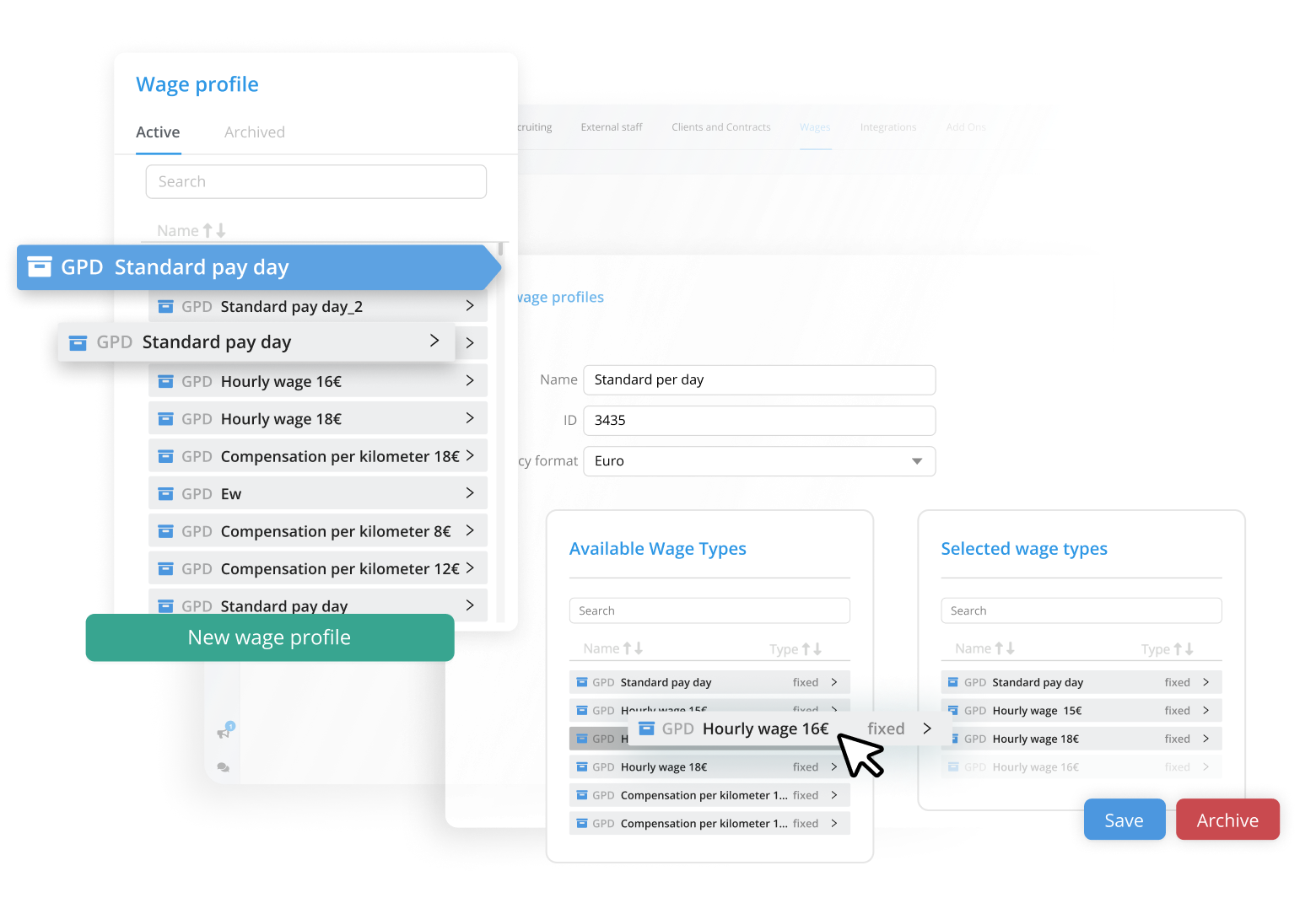 Wages can change - be it because of a project or function or due to national regulations being altered. With the Staffcloud wage system, you have everything you need to respond to the steady stream of changes. Build your own wage profiles - there is no end to the possibilities.